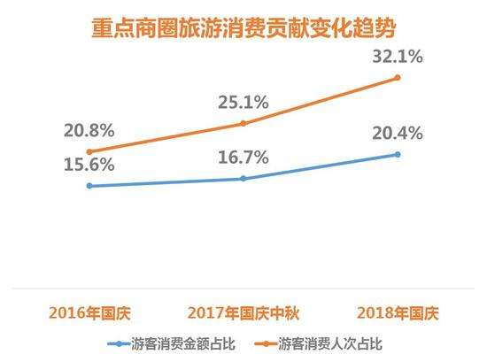 相較于2017年的國慶中秋超級黃金周,旅游消費金額同比增長10.4%,旅游消費人次同比增長9.3%。居民出游消費熱情持續高漲。