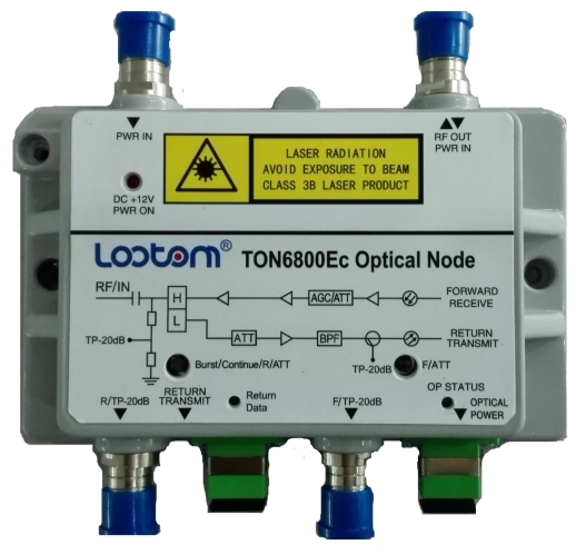 Overview        TON6800Ec home-type Optical node is designed in accordance with GY / T 194-2003 "cable television system optical station technical requirements and measurement methods" and "SCTE 174-2010 RFoG fiber to the user standard".It can be used in CATV network, digital network and telecommunications network. This device completes the signal transmission of the fiber to the user's home terminal.