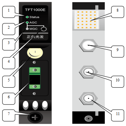 TFT1000E modular transmitter pictures:1,state indicator: normal -> green, red -> alarm ...